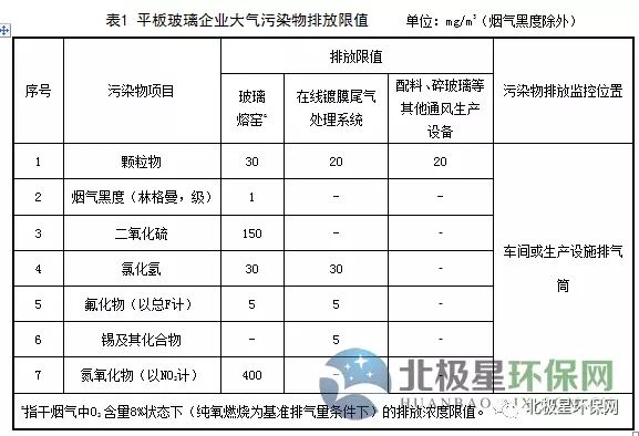 4、平板玻璃工業大氣污染物限值規定,玻璃熔窯的顆粒物、SO2、NOx分別為30mg/Nm3、150mg/Nm3、400mg/Nm3。